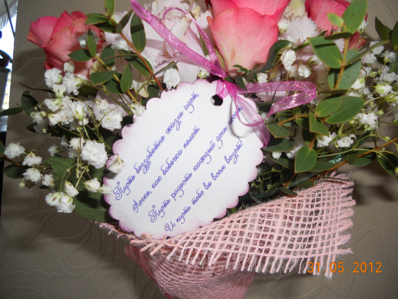 а этот букет делала сама от себя. внутри магнитик с пожеланием.
